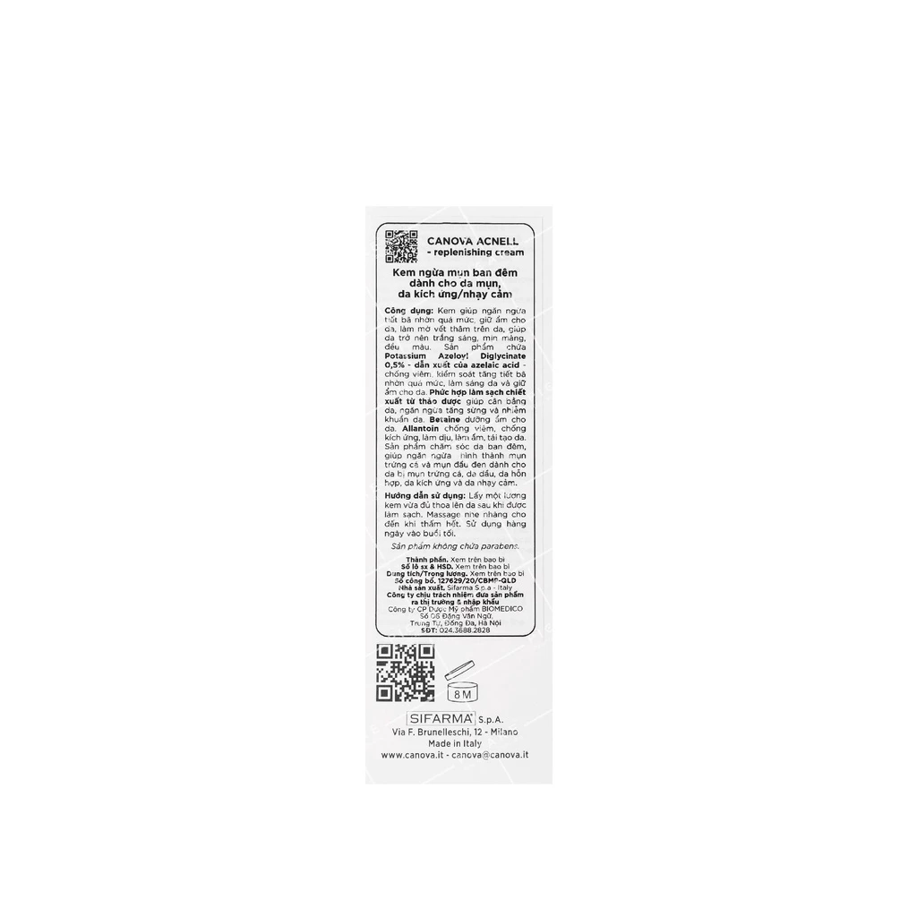 CANOVA Kem ngừa mụn ban đêm dành cho da mụn, da kích ứng nhạy cảm Canova Acnell – Replenishing Cream 50ml + KCN Evor