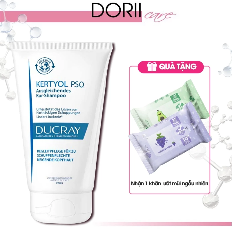 Ducray dầu gội hỗ trợ cho da đầu bị vảy nến, mảng bám, gàu nặng & ngứa Kertyol Pso Treatment Shampoo 125ml + khăn giấy