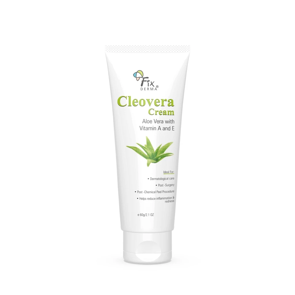 Kem Dưỡng Da Mặt Fixderma Cleovera Cream (60g) tại Dorii Care là giải pháp chăm sóc da toàn diện với sự kết hợp hoàn hảo giữa Lô Hội (Aloe Vera) cùng Vitamin A & E giúp cấp ẩm sâu, nuôi dưỡng làn da mềm mại, sáng mịn và khỏe mạnh. Sản phẩm phù hợp với mọi loại da, đặc biệt là làn da khô, thiếu ẩm hoặc xỉn màu, mang lại hiệu quả dưỡng trắng rõ rệt sau một thời gian sử dụng.