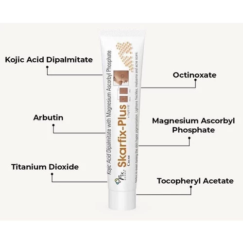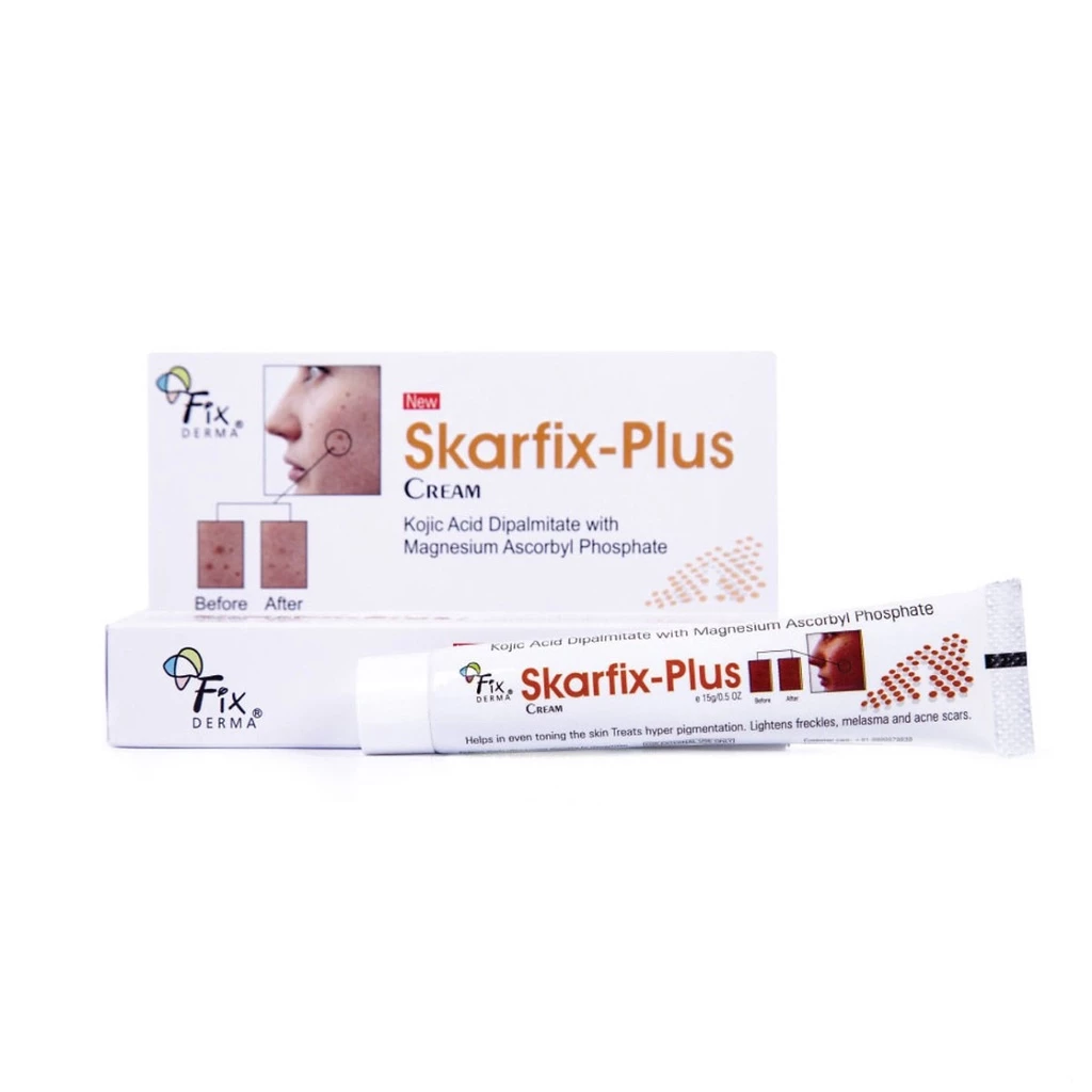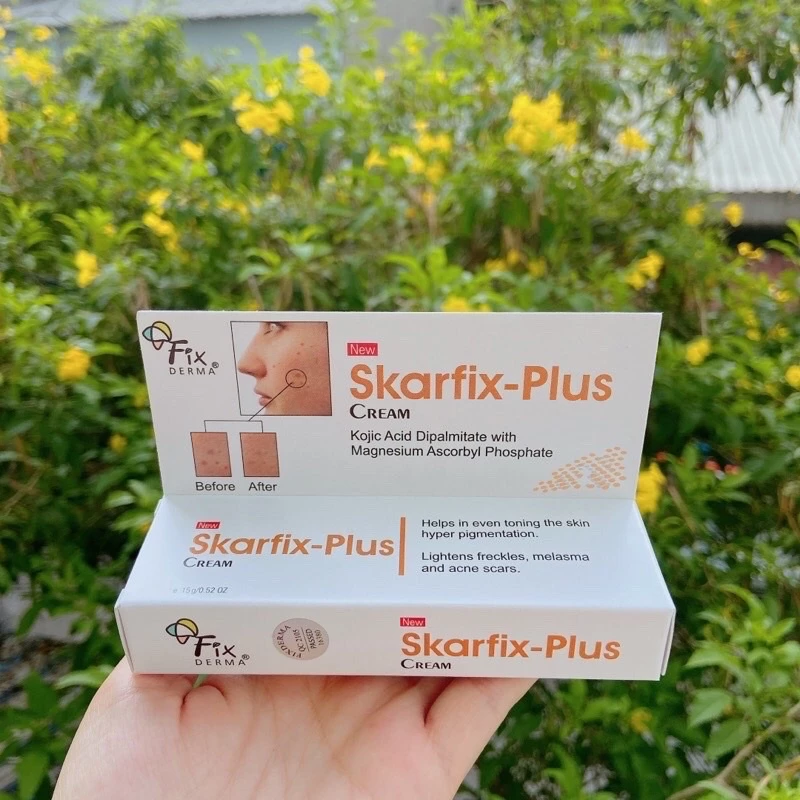 Fixderma Skarfix Plus Cream 15g giúp làm sáng da, mờ nám, tàn nhang và thâm mụn hiệu quả. Công thức chứa Arbutin, Kojic Acid và Vitamin C hỗ trợ ức chế melanin, cải thiện sắc tố da, mang lại làn da đều màu, mịn màng và tươi sáng hơn.