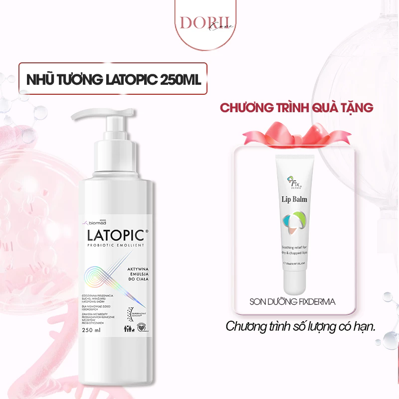 Nhũ tương dưỡng ẩm giúp làm dịu ngứa cho da khô nhạy cảm toàn thân Latopic Body Emulsion 250ml + BTT Dr.sera