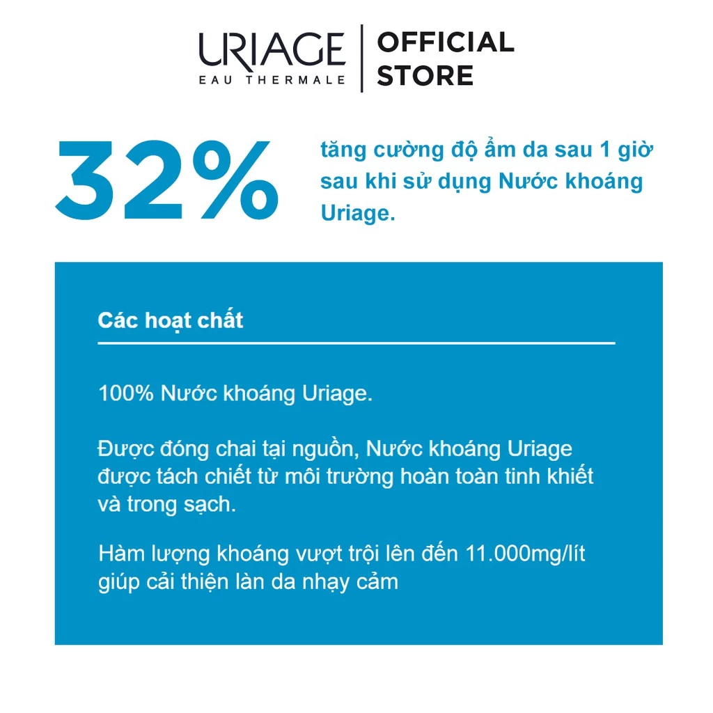100% nước khoáng tinh khiết Uriage giàu khoáng chất tự nhiên.